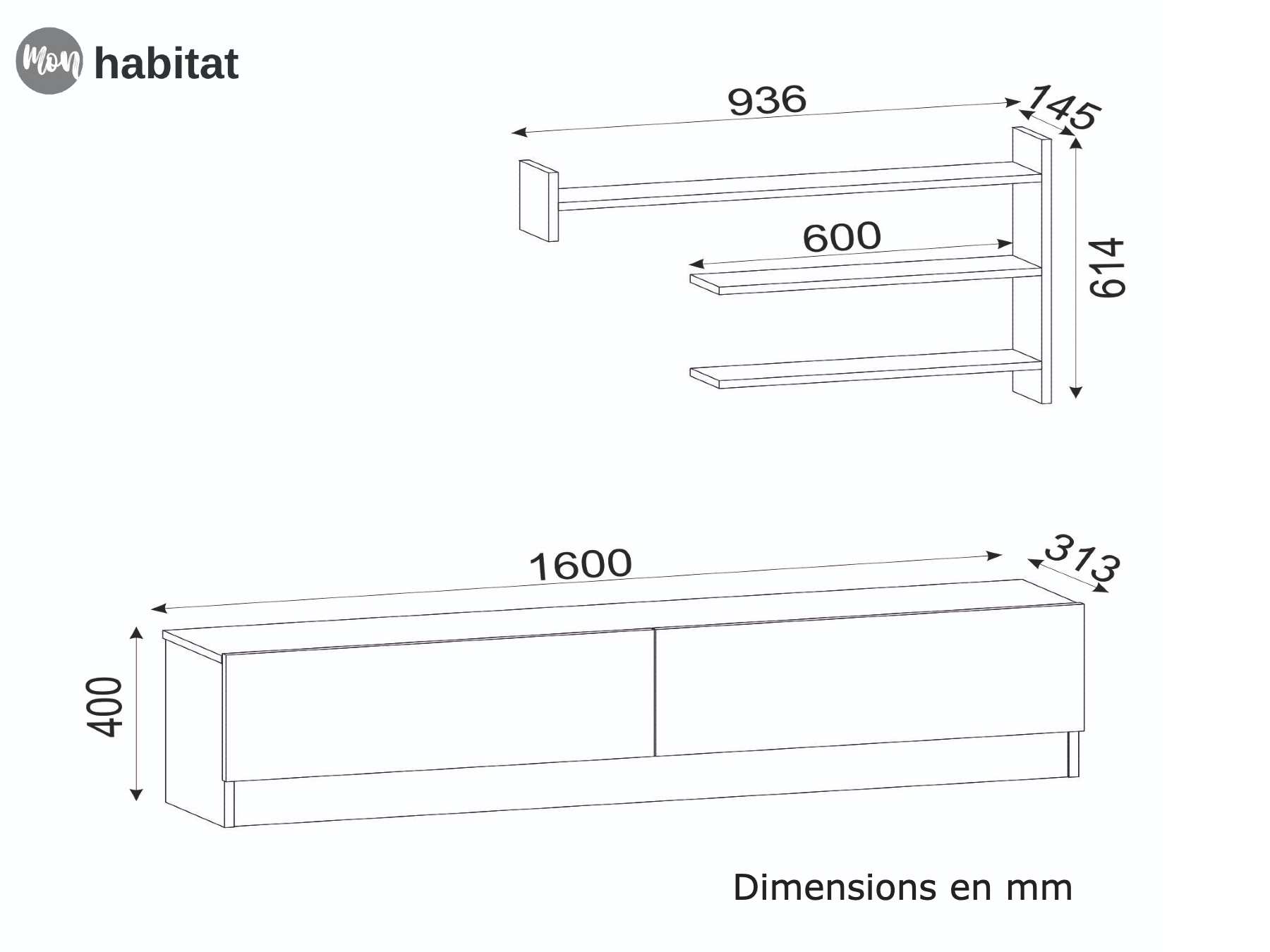 Dimensions du meuble TV: